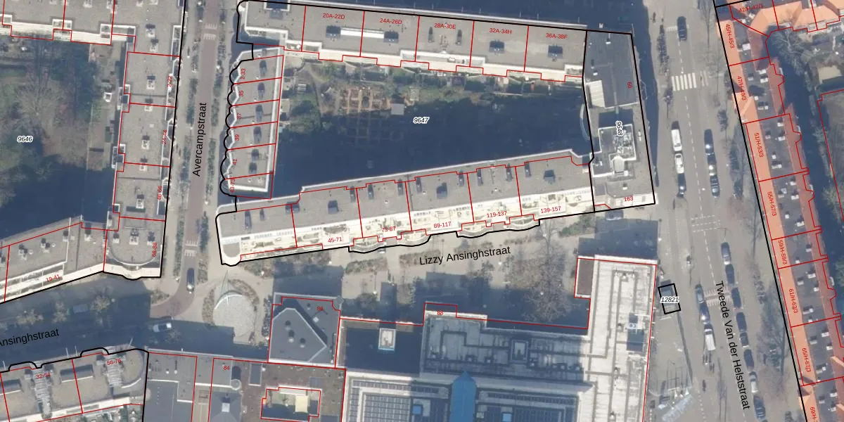 Lizzy Ansinghstraat 91 is gelegen op kadastraal perceel ASD18V9647. Deze kadastrale aanduiding is uniek en wordt gebruikt door het Kadaster om eigendomsrechten en andere zakelijke rechten vast te leggen. Het perceel maakt onderdeel uit van de kadastrale gemeente Amsterdam.