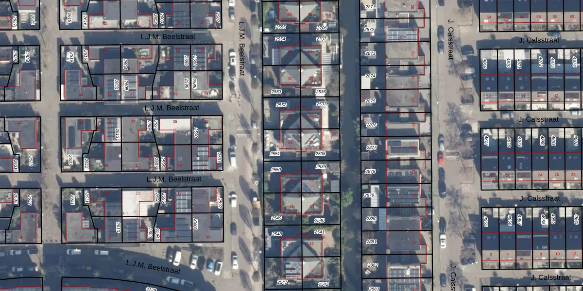Gebruik de zoekbalk of klik op een perceel voor informatie over de adressen binnen dit perceel.
