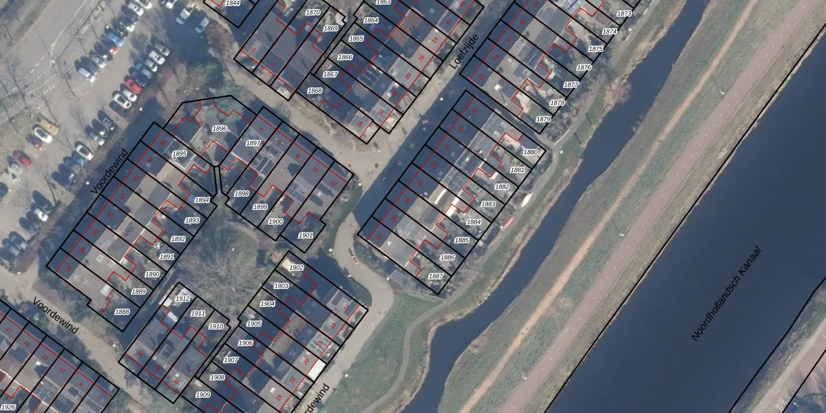 Gebruik de zoekbalk of klik op een perceel voor informatie over de adressen binnen dit perceel.