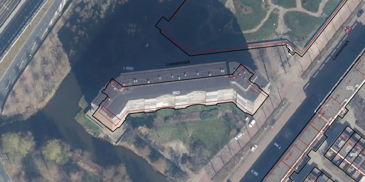 Loenermark 102 is gelegen op kadastraal perceel ASD31AL2148. Deze kadastrale aanduiding is uniek en wordt gebruikt door het Kadaster om eigendomsrechten en andere zakelijke rechten vast te leggen. Het perceel maakt onderdeel uit van de kadastrale gemeente Amsterdam.
