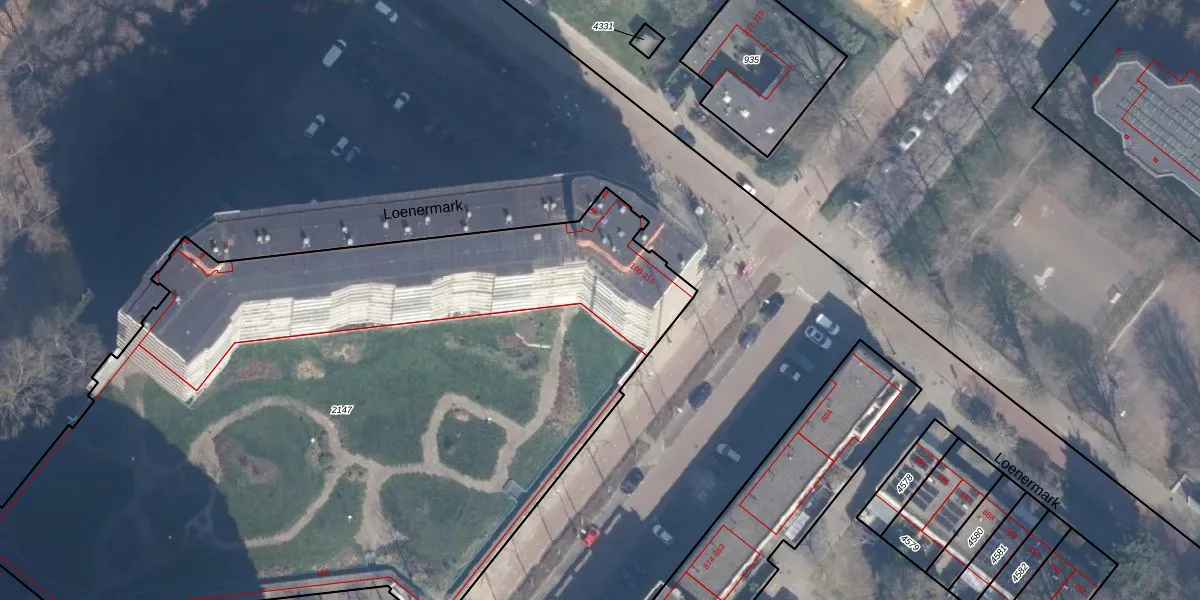 Het perceel waarop Loenermark 174 staat heeft een oppervlakte van 5295 m². Dit is een zeer groot perceel. De perceeloppervlakte wordt geregistreerd door het Kadaster. Gedetailleerde informatie over de maten van dit perceel kunt u vinden in het rapport Kadastrale kaart met maatvoering van Loenermark 174.
