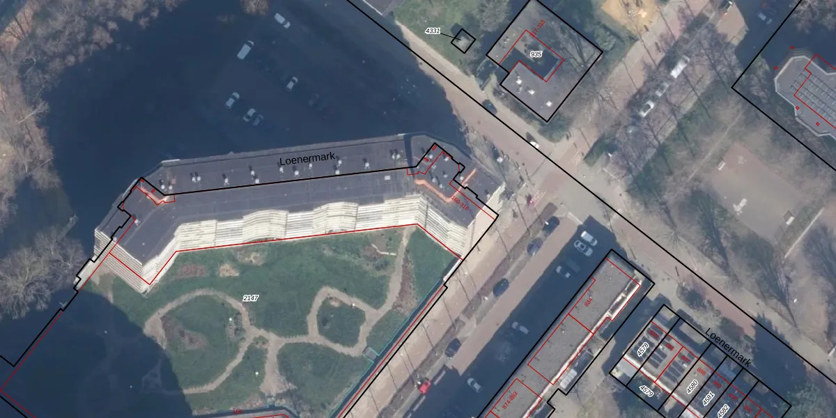 Het perceel waarop Loenermark 177 staat heeft een oppervlakte van 5295 m². Dit is een zeer groot perceel. De perceeloppervlakte wordt geregistreerd door het Kadaster. Gedetailleerde informatie over de maten van dit perceel kunt u vinden in het rapport Kadastrale kaart met maatvoering van Loenermark 177.
