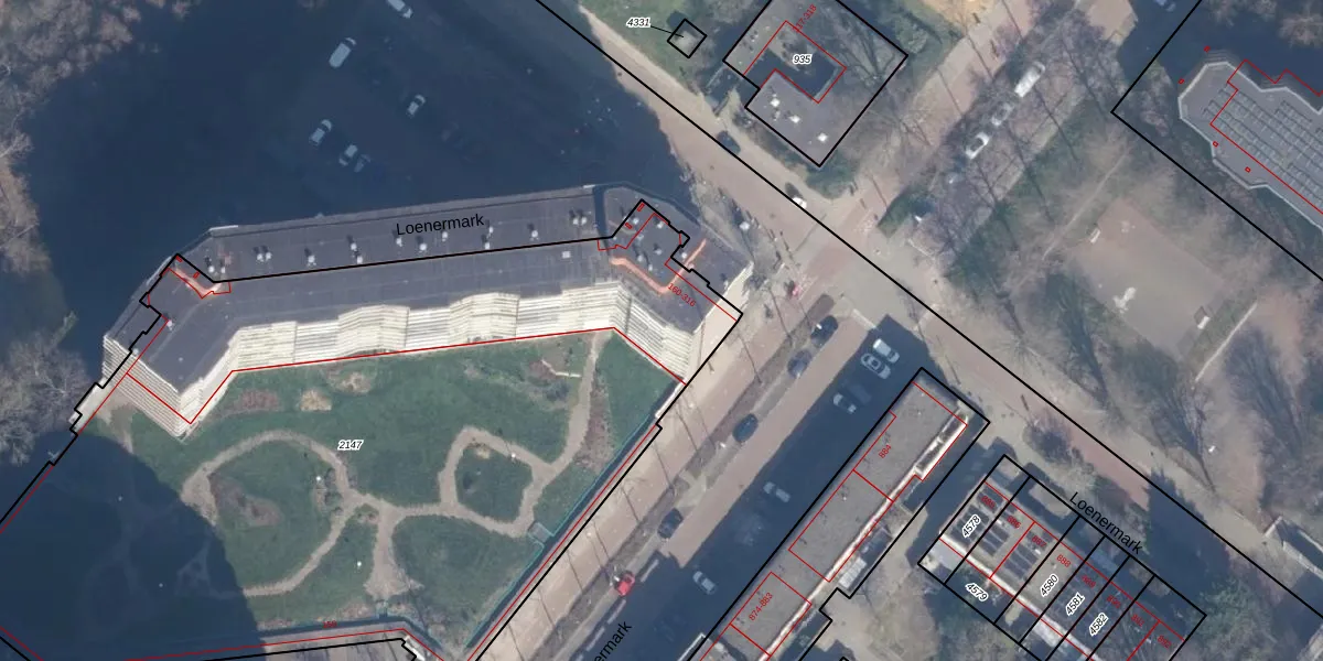 Loenermark 185 is gelegen op kadastraal perceel ASD31AL2147. Deze kadastrale aanduiding is uniek en wordt gebruikt door het Kadaster om eigendomsrechten en andere zakelijke rechten vast te leggen. Het perceel maakt onderdeel uit van de kadastrale gemeente Amsterdam.