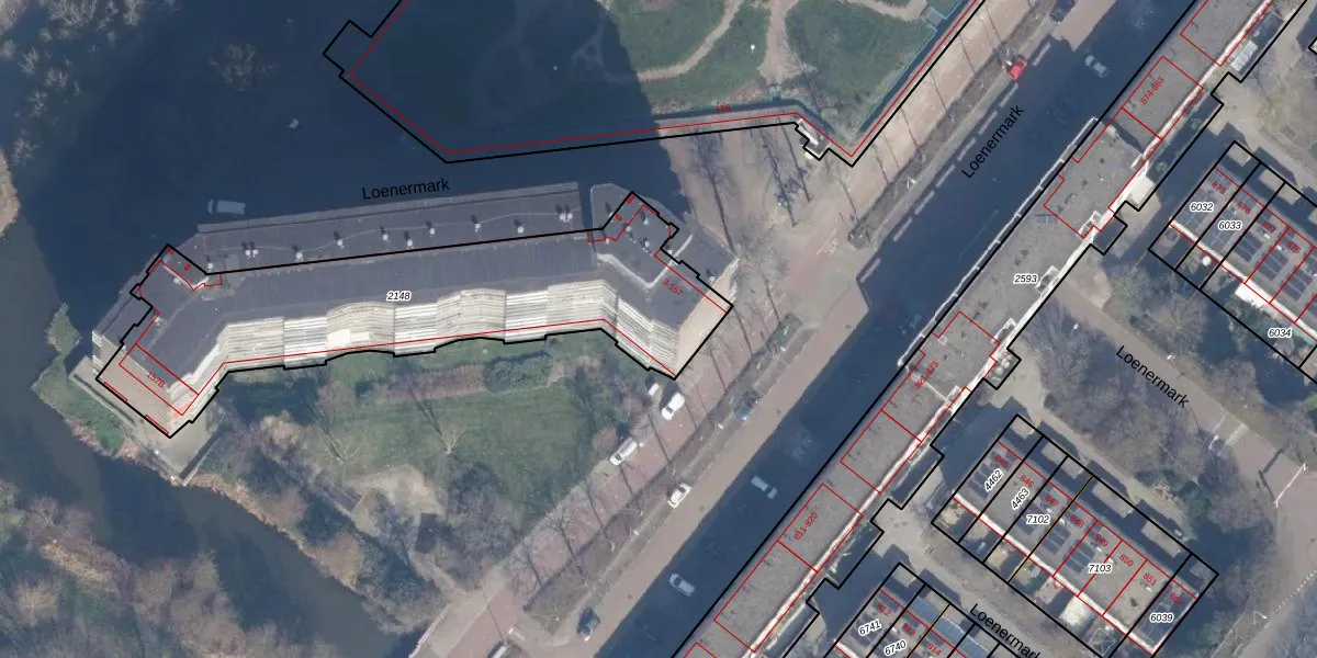 Het perceel waarop Loenermark 41 staat heeft een oppervlakte van 1546 m². Dit is een zeer groot perceel. De perceeloppervlakte wordt geregistreerd door het Kadaster. Gedetailleerde informatie over de maten van dit perceel kunt u vinden in het rapport Kadastrale kaart met maatvoering van Loenermark 41.