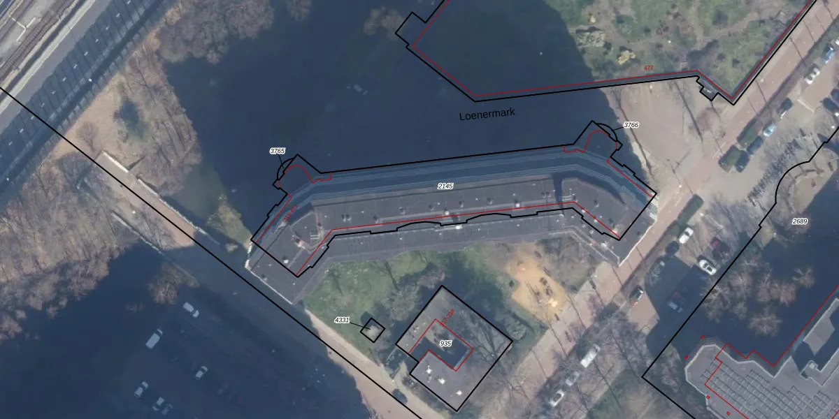 Het perceel waarop Loenermark 436 staat heeft een oppervlakte van 1547 m². Dit is een zeer groot perceel. De perceeloppervlakte wordt geregistreerd door het Kadaster. Gedetailleerde informatie over de maten van dit perceel kunt u vinden in het rapport Kadastrale kaart met maatvoering van Loenermark 436.