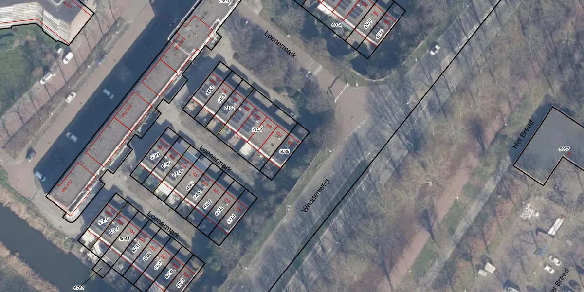 Gebruik de zoekbalk of klik op een perceel voor informatie over de adressen binnen dit perceel.