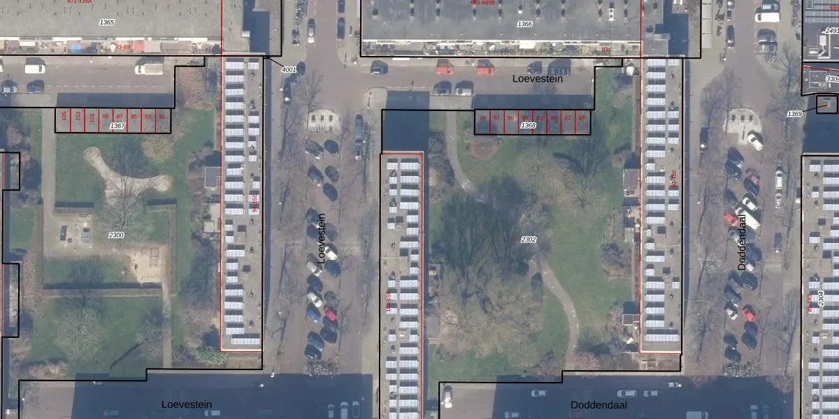 Het perceel waarop Loevestein 113 staat heeft een oppervlakte van 5152 m². Dit is een zeer groot perceel. De perceeloppervlakte wordt geregistreerd door het Kadaster. Gedetailleerde informatie over de maten van dit perceel kunt u vinden in het rapport Kadastrale kaart met maatvoering van Loevestein 113.