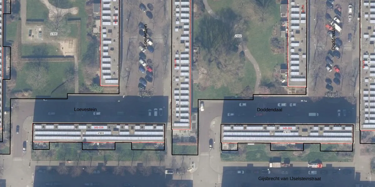 Loevestein 143 is gelegen op kadastraal perceel ASD30AK2302. Deze kadastrale aanduiding is uniek en wordt gebruikt door het Kadaster om eigendomsrechten en andere zakelijke rechten vast te leggen. Het perceel maakt onderdeel uit van de kadastrale gemeente Amsterdam.