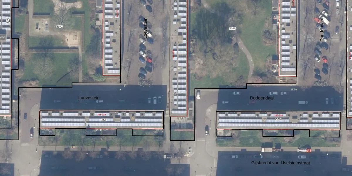 Loevestein 145 is gelegen op kadastraal perceel ASD30AK2302. Deze kadastrale aanduiding is uniek en wordt gebruikt door het Kadaster om eigendomsrechten en andere zakelijke rechten vast te leggen. Het perceel maakt onderdeel uit van de kadastrale gemeente Amsterdam.