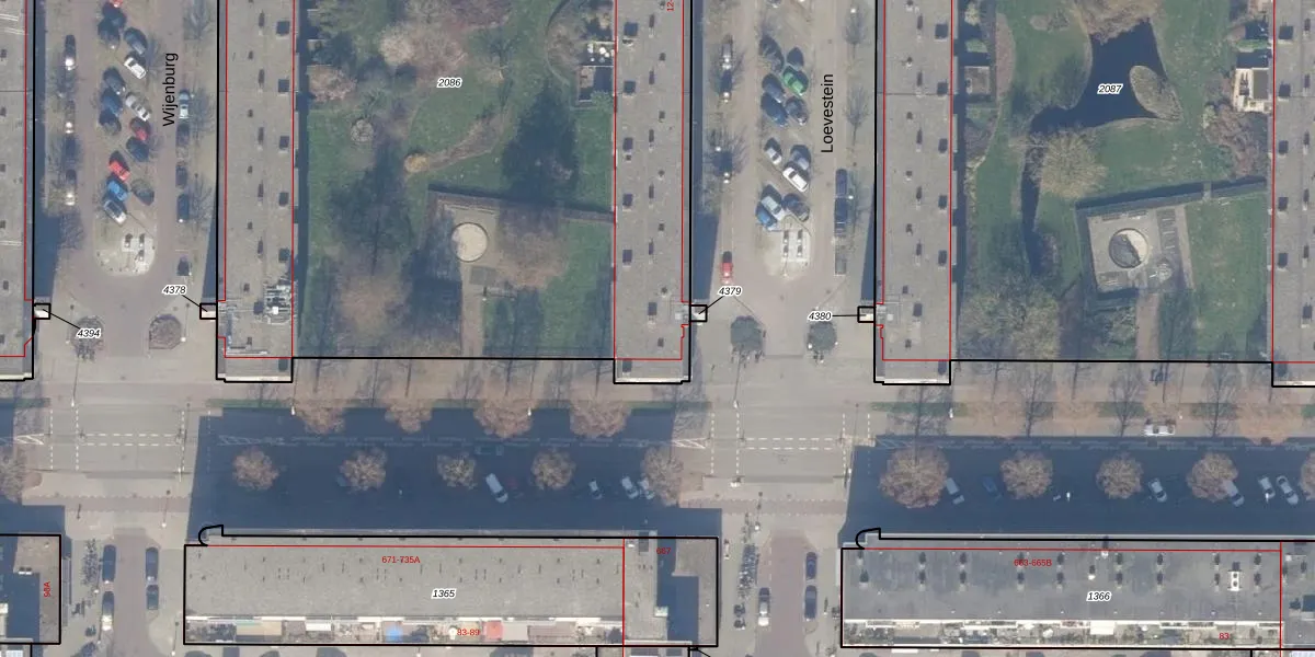 Het perceel waarop Loevestein 40 staat heeft een oppervlakte van 5864 m². Dit is een zeer groot perceel. De perceeloppervlakte wordt geregistreerd door het Kadaster. Gedetailleerde informatie over de maten van dit perceel kunt u vinden in het rapport Kadastrale kaart met maatvoering van Loevestein 40.