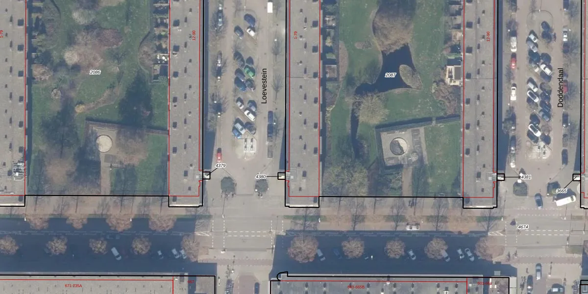 Het perceel waarop Loevestein 75 staat heeft een oppervlakte van 5866 m². Dit is een zeer groot perceel. De perceeloppervlakte wordt geregistreerd door het Kadaster. Gedetailleerde informatie over de maten van dit perceel kunt u vinden in het rapport Kadastrale kaart met maatvoering van Loevestein 75.