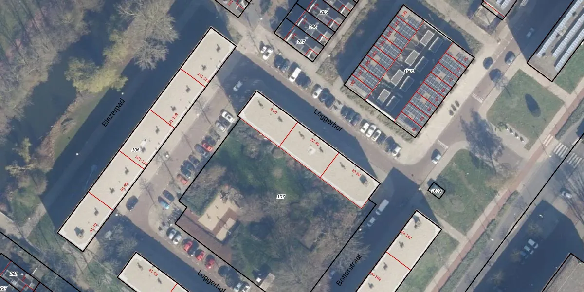 Het perceel waarop Loggerhof 26 staat heeft een oppervlakte van 2876 m². Dit is een zeer groot perceel. De perceeloppervlakte wordt geregistreerd door het Kadaster. Gedetailleerde informatie over de maten van dit perceel kunt u vinden in het rapport Kadastrale kaart met maatvoering van Loggerhof 26.