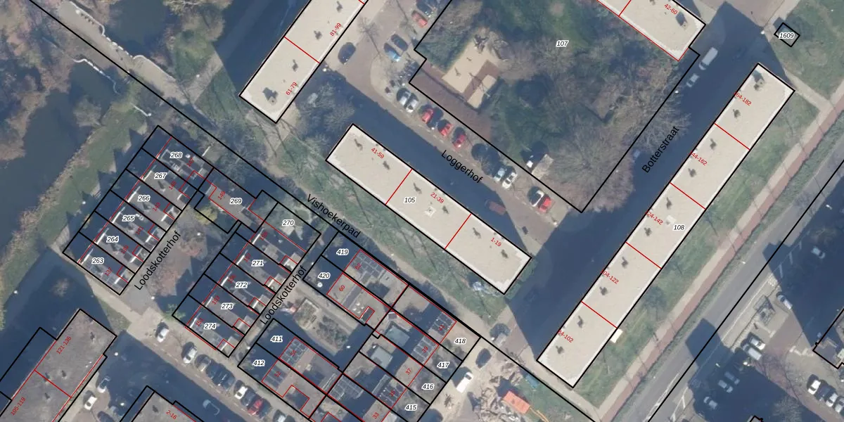 Het perceel waarop Loggerhof 31 staat heeft een oppervlakte van 573 m². Dit is een groot perceel. De perceeloppervlakte wordt geregistreerd door het Kadaster. Gedetailleerde informatie over de maten van dit perceel kunt u vinden in het rapport Kadastrale kaart met maatvoering van Loggerhof 31.