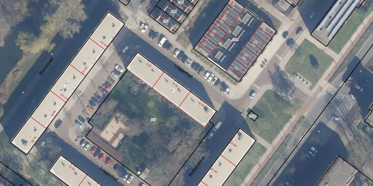 Het perceel waarop Loggerhof 40 staat heeft een oppervlakte van 2876 m². Dit is een zeer groot perceel. De perceeloppervlakte wordt geregistreerd door het Kadaster. Gedetailleerde informatie over de maten van dit perceel kunt u vinden in het rapport Kadastrale kaart met maatvoering van Loggerhof 40.