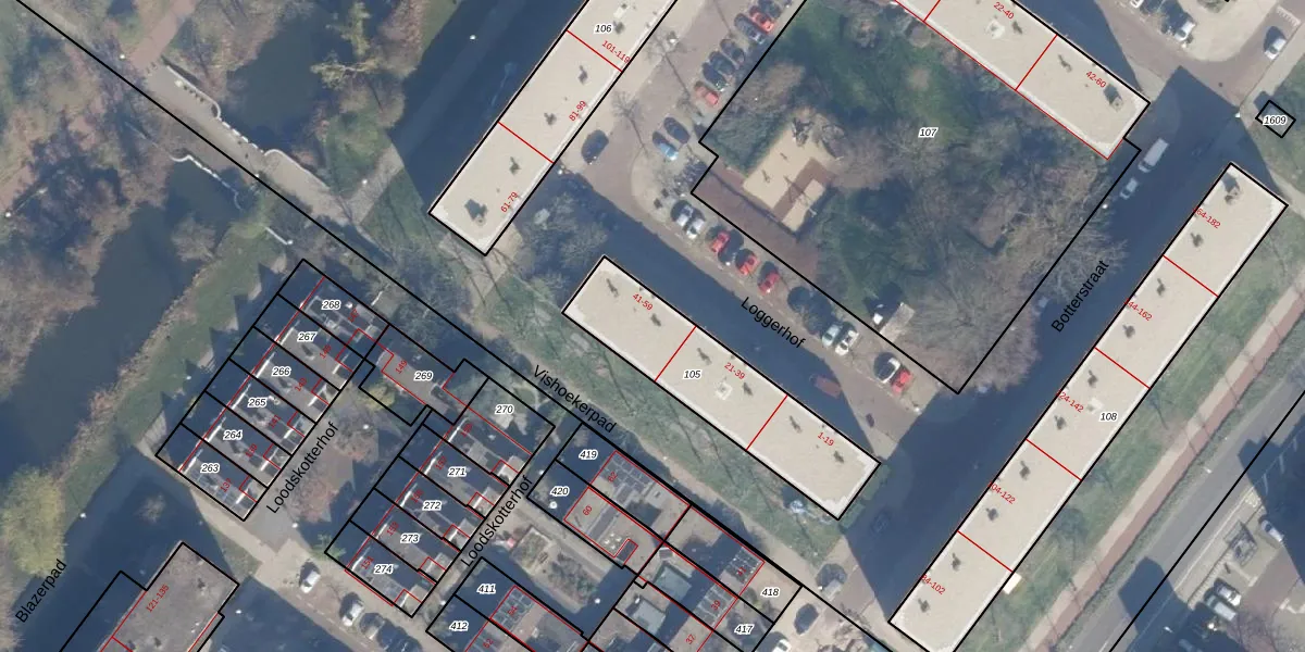 Het perceel waarop Loggerhof 43 staat heeft een oppervlakte van 573 m². Dit is een groot perceel. De perceeloppervlakte wordt geregistreerd door het Kadaster. Gedetailleerde informatie over de maten van dit perceel kunt u vinden in het rapport Kadastrale kaart met maatvoering van Loggerhof 43.