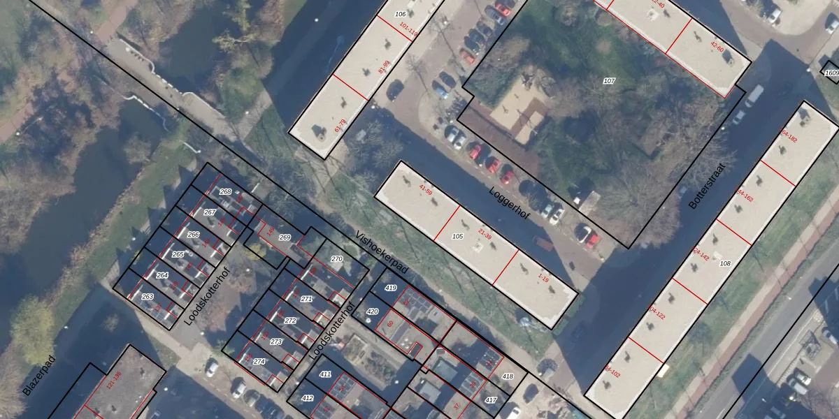 Het perceel waarop Loggerhof 49 staat heeft een oppervlakte van 573 m². Dit is een groot perceel. De perceeloppervlakte wordt geregistreerd door het Kadaster. Gedetailleerde informatie over de maten van dit perceel kunt u vinden in het rapport Kadastrale kaart met maatvoering van Loggerhof 49.