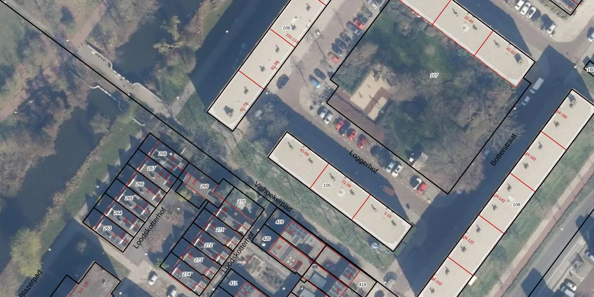 Het perceel waarop Loggerhof 57 staat heeft een oppervlakte van 573 m². Dit is een groot perceel. De perceeloppervlakte wordt geregistreerd door het Kadaster. Gedetailleerde informatie over de maten van dit perceel kunt u vinden in het rapport Kadastrale kaart met maatvoering van Loggerhof 57.