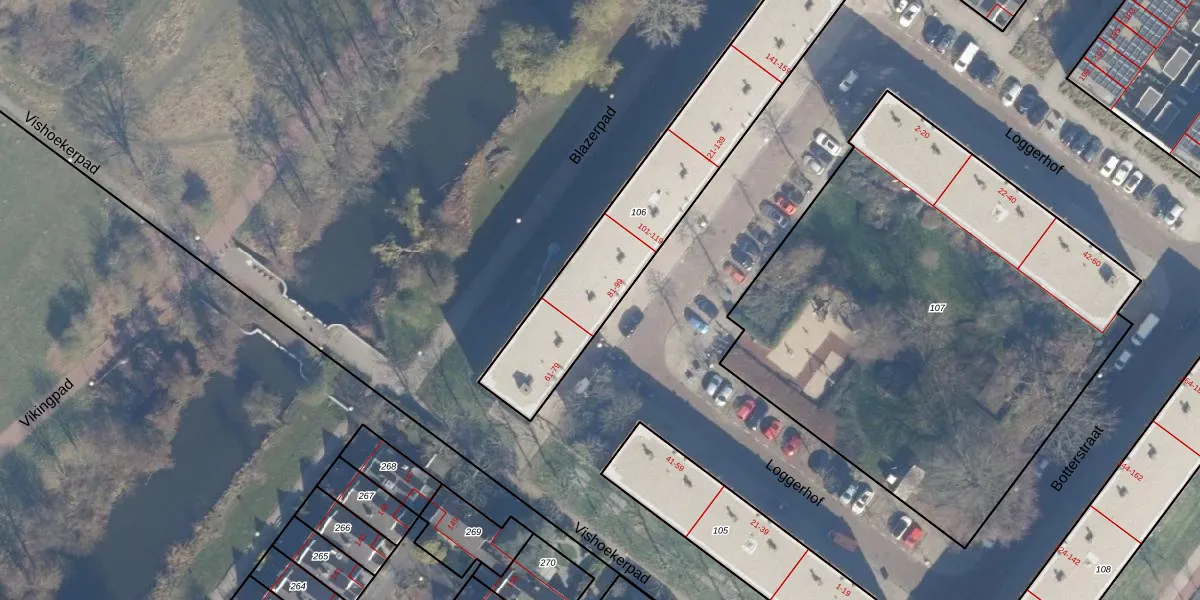Het perceel waarop Loggerhof 83 staat heeft een oppervlakte van 951 m². Dit is een groot perceel. De perceeloppervlakte wordt geregistreerd door het Kadaster. Gedetailleerde informatie over de maten van dit perceel kunt u vinden in het rapport Kadastrale kaart met maatvoering van Loggerhof 83.