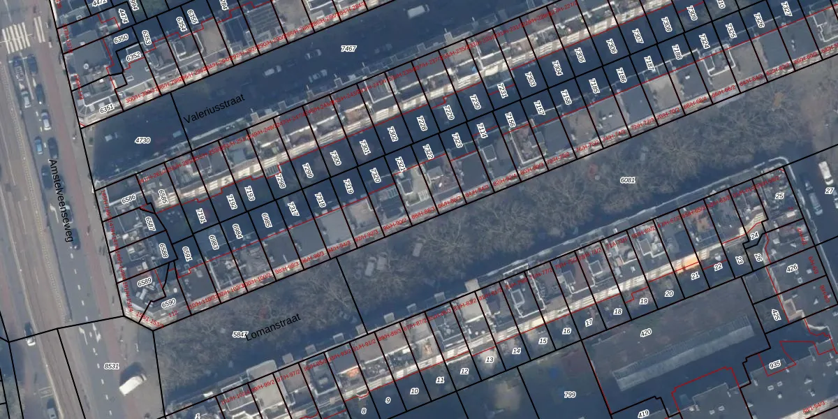 Het adres is gelegen op perceel 7321 in de sectie U en de kadastrale gemeente Amsterdam. De kadastrale aanduiding is aldus ASD17-U-7321. De gemiddelde perceelgrootte in Amsterdam is 394,52 m². Dit perceel is kleiner: de perceeloppervlakte bedraagt 129 m². De grootste perceeloppervlakte in de kadastrale gemeente is 22,9 ha. De kleinste oppervlakte bedraagt 0 m². Er zijn 3 adressen aanwezig op het perceel. In de Basisregistratie Kadaster (BRK) werden de grenzen van het perceel geregistreerd op 15-11-2006.