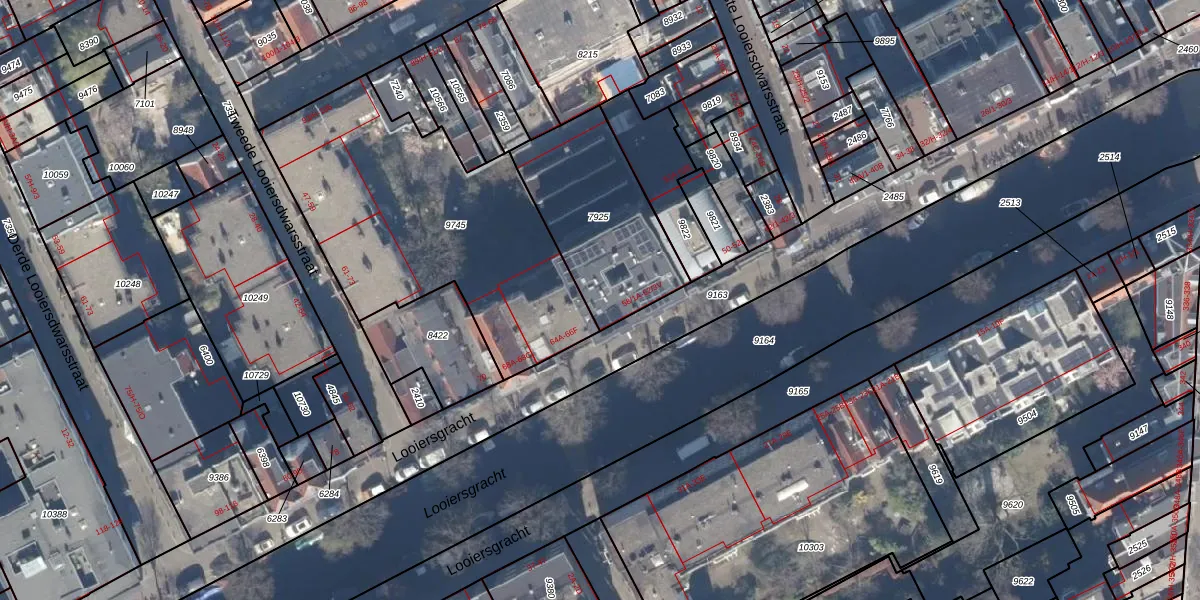 Het perceel waarop Looiersgracht 62-1V staat heeft een oppervlakte van 561 m². Dit is een groot perceel. De perceeloppervlakte wordt geregistreerd door het Kadaster. Gedetailleerde informatie over de maten van dit perceel kunt u vinden in het rapport Kadastrale kaart met maatvoering van Looiersgracht 62-1V.