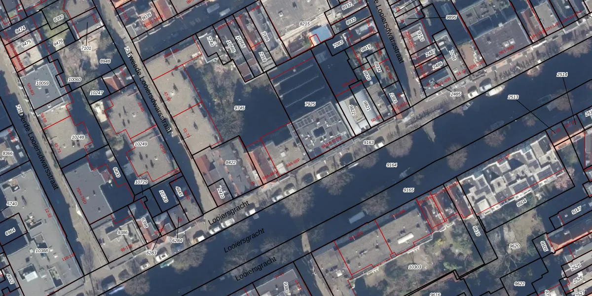 Het perceel waarop Looiersgracht 64-E staat heeft een oppervlakte van 1377 m². Dit is een zeer groot perceel. De perceeloppervlakte wordt geregistreerd door het Kadaster. Gedetailleerde informatie over de maten van dit perceel kunt u vinden in het rapport Kadastrale kaart met maatvoering van Looiersgracht 64-E.