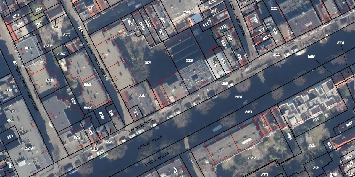 Looiersgracht 64-F is gelegen op kadastraal perceel ASD03E9745. Deze kadastrale aanduiding is uniek en wordt gebruikt door het Kadaster om eigendomsrechten en andere zakelijke rechten vast te leggen. Het perceel maakt onderdeel uit van de kadastrale gemeente Amsterdam.