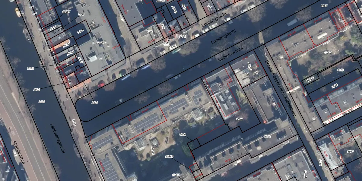 Het perceel waarop Looiersgracht 65 staat heeft een oppervlakte van 3379 m². Dit is een zeer groot perceel. De perceeloppervlakte wordt geregistreerd door het Kadaster. Gedetailleerde informatie over de maten van dit perceel kunt u vinden in het rapport Kadastrale kaart met maatvoering van Looiersgracht 65.