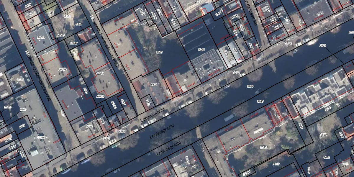 Het perceel waarop Looiersgracht 68-C staat heeft een oppervlakte van 1377 m². Dit is een zeer groot perceel. De perceeloppervlakte wordt geregistreerd door het Kadaster. Gedetailleerde informatie over de maten van dit perceel kunt u vinden in het rapport Kadastrale kaart met maatvoering van Looiersgracht 68-C.