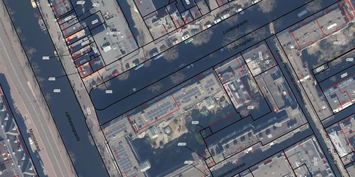 Het perceel waarop Looiersgracht 79 staat heeft een oppervlakte van 3379 m². Dit is een zeer groot perceel. De perceeloppervlakte wordt geregistreerd door het Kadaster. Gedetailleerde informatie over de maten van dit perceel kunt u vinden in het rapport Kadastrale kaart met maatvoering van Looiersgracht 79.