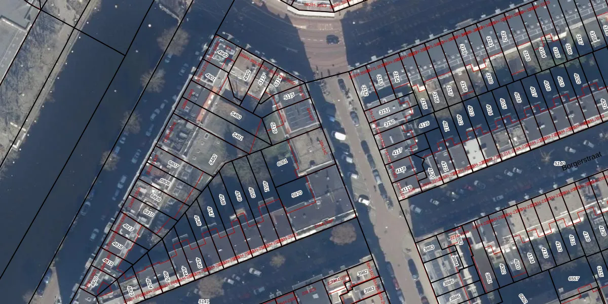 Het perceel waarop het adres ligt is ASD16-T-6091. De afkorting 'ASD16' staat voor kadastrale gemeente Amsterdam. Het perceel is met 277 m² relatief groot. Het gemiddelde ligt in de kadastrale gemeente Amsterdam op 245,33 m². De grootste perceeloppervlakte in de kadastrale gemeente is 3,3 ha. De kleinste oppervlakte bedraagt 0 m². Op het perceel liggen in totaal 9 adressen. De laatste wijziging in het de Basisregistratie Kadaster (BRK) was op 10-01-2007.