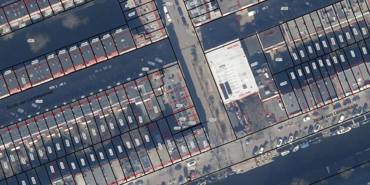 Het adres ligt op het perceel ASD16-T-6563, dat zich in de kadastrale gemeente Amsterdam bevindt. Het perceel is met 363 m² relatief groot. Het gemiddelde ligt in de kadastrale gemeente Amsterdam op 245,33 m². De grootste perceeloppervlakte in de kadastrale gemeente is 3,3 ha. De kleinste oppervlakte bedraagt 0 m². Er zijn 10 adressen aanwezig op het perceel. In de Basisregistratie Kadaster (BRK) werden de grenzen van het perceel geregistreerd op 01-07-2011.