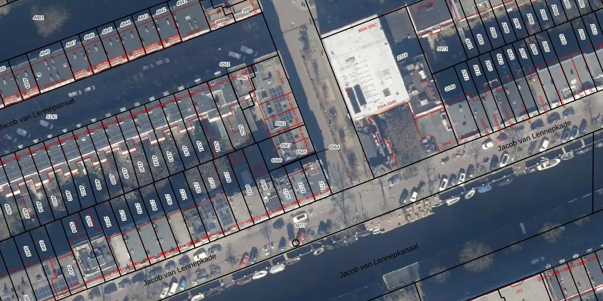 Het adres ligt op het perceel ASD16-T-6567, dat zich in de kadastrale gemeente Amsterdam bevindt. De gemiddelde perceelgrootte in Amsterdam is 245,33 m². Dit perceel is kleiner: de perceeloppervlakte bedraagt 169 m². De grootste perceeloppervlakte in de kadastrale gemeente is 3,3 ha. De kleinste oppervlakte bedraagt 0 m². Op het perceel zijn 5 adressen aanwezig. De laatste wijziging in het de Basisregistratie Kadaster (BRK) was op 01-07-2011.