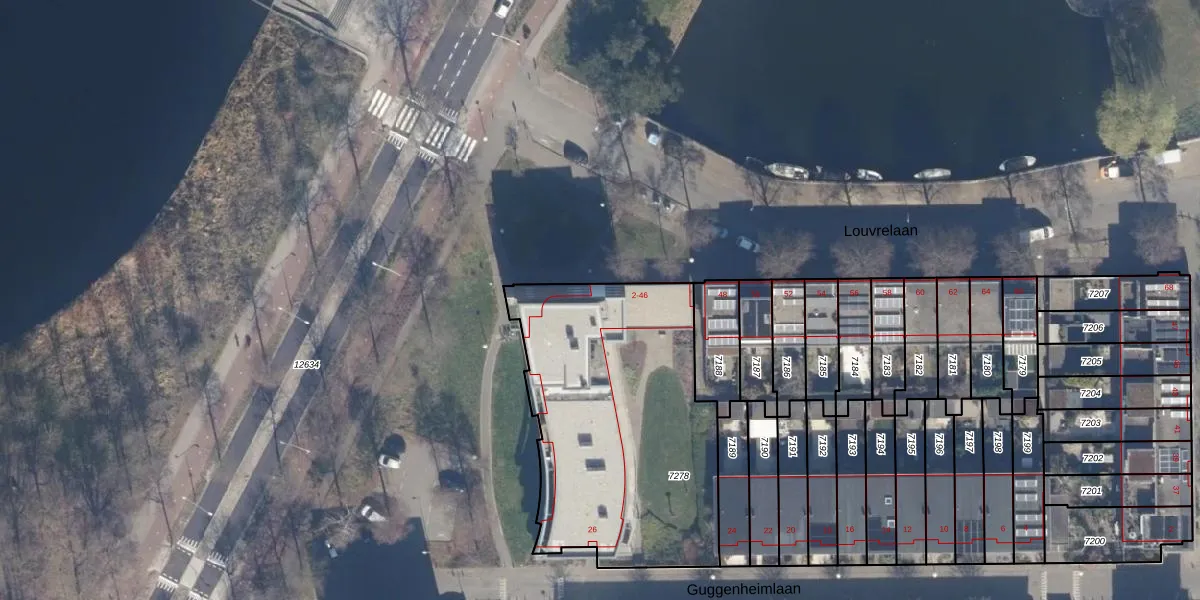 Het perceel waarop Louvrelaan 2 staat heeft een oppervlakte van 1372 m². Dit is een zeer groot perceel. De perceeloppervlakte wordt geregistreerd door het Kadaster. Gedetailleerde informatie over de maten van dit perceel kunt u vinden in het rapport Kadastrale kaart met maatvoering van Louvrelaan 2.
