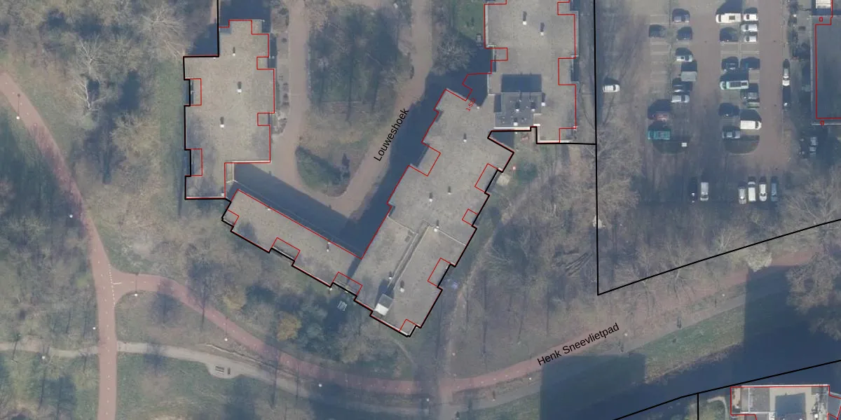 Het perceel waarop Louweshoek 11 staat heeft een oppervlakte van 1,1 ha. Dit is een zeer groot perceel. De perceeloppervlakte wordt geregistreerd door het Kadaster. Gedetailleerde informatie over de maten van dit perceel kunt u vinden in het rapport Kadastrale kaart met maatvoering van Louweshoek 11.