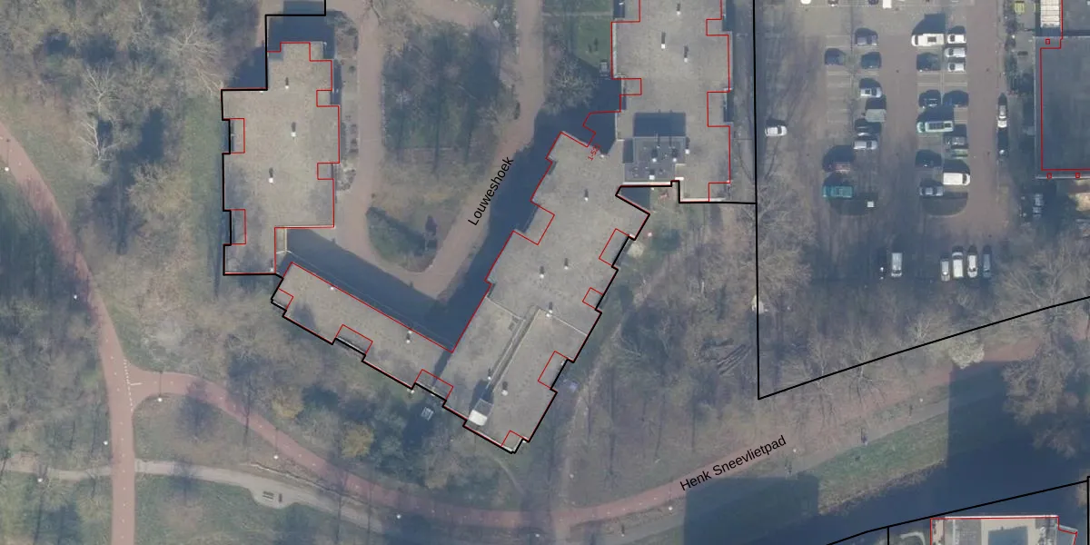 Het perceel waarop Louweshoek 113 staat heeft een oppervlakte van 1,1 ha. Dit is een zeer groot perceel. De perceeloppervlakte wordt geregistreerd door het Kadaster. Gedetailleerde informatie over de maten van dit perceel kunt u vinden in het rapport Kadastrale kaart met maatvoering van Louweshoek 113.