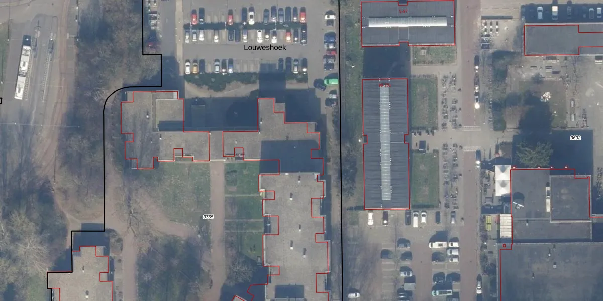 Het perceel waarop Louweshoek 28 staat heeft een oppervlakte van 1,1 ha. Dit is een zeer groot perceel. De perceeloppervlakte wordt geregistreerd door het Kadaster. Gedetailleerde informatie over de maten van dit perceel kunt u vinden in het rapport Kadastrale kaart met maatvoering van Louweshoek 28.
