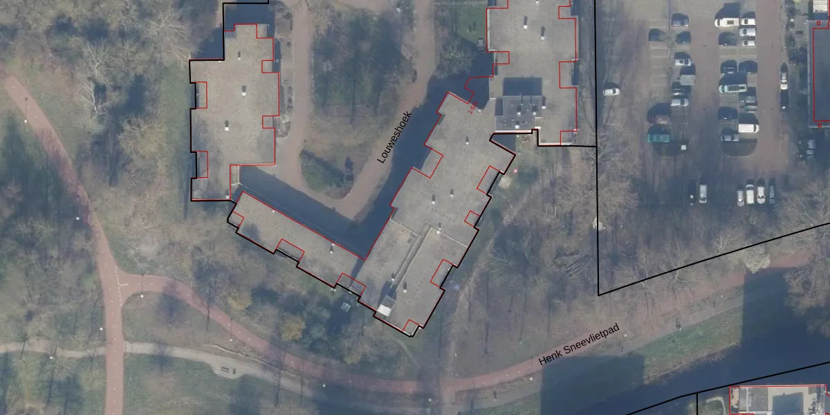 Het perceel waarop Louweshoek 309 staat heeft een oppervlakte van 1,1 ha. Dit is een zeer groot perceel. De perceeloppervlakte wordt geregistreerd door het Kadaster. Gedetailleerde informatie over de maten van dit perceel kunt u vinden in het rapport Kadastrale kaart met maatvoering van Louweshoek 309.