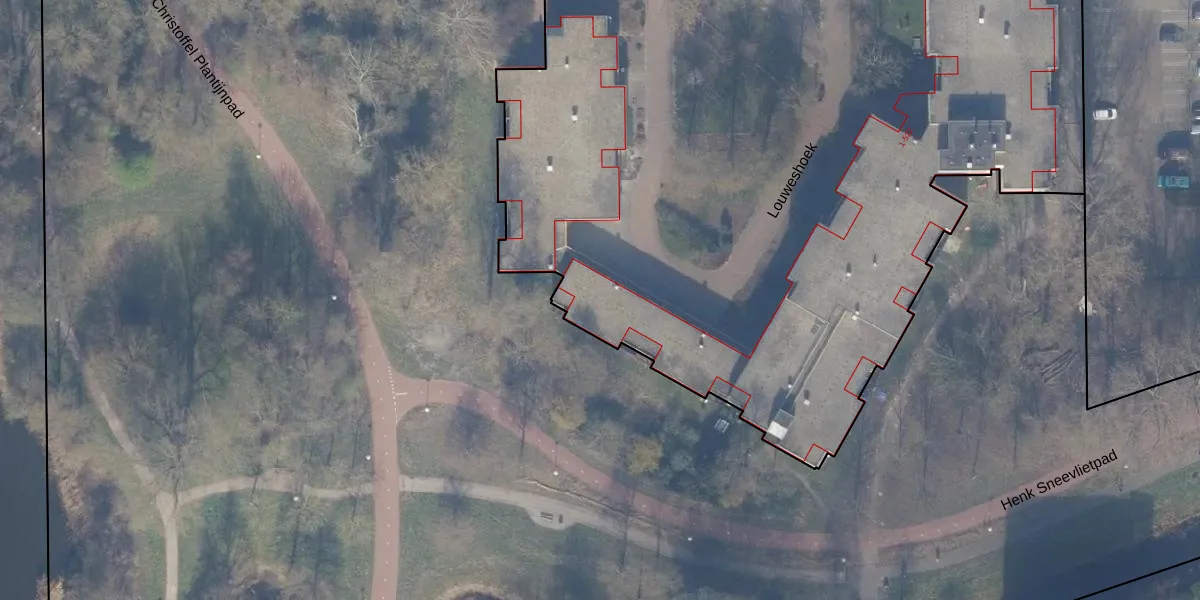 Het perceel waarop Louweshoek 31 staat heeft een oppervlakte van 1,1 ha. Dit is een zeer groot perceel. De perceeloppervlakte wordt geregistreerd door het Kadaster. Gedetailleerde informatie over de maten van dit perceel kunt u vinden in het rapport Kadastrale kaart met maatvoering van Louweshoek 31.