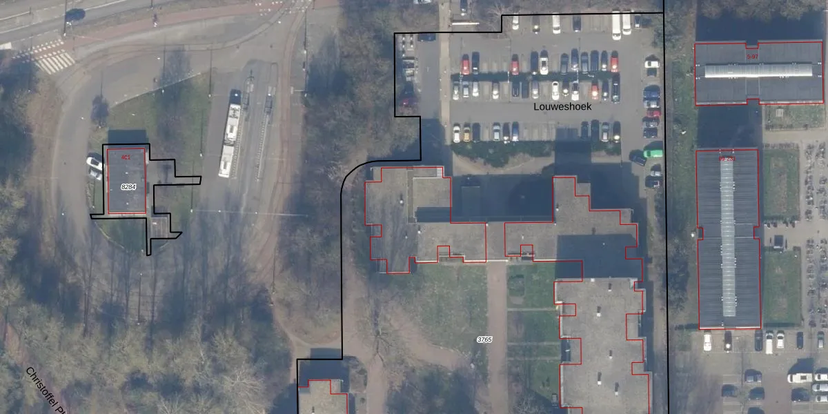 Het perceel waarop Louweshoek 32 staat heeft een oppervlakte van 1,1 ha. Dit is een zeer groot perceel. De perceeloppervlakte wordt geregistreerd door het Kadaster. Gedetailleerde informatie over de maten van dit perceel kunt u vinden in het rapport Kadastrale kaart met maatvoering van Louweshoek 32.