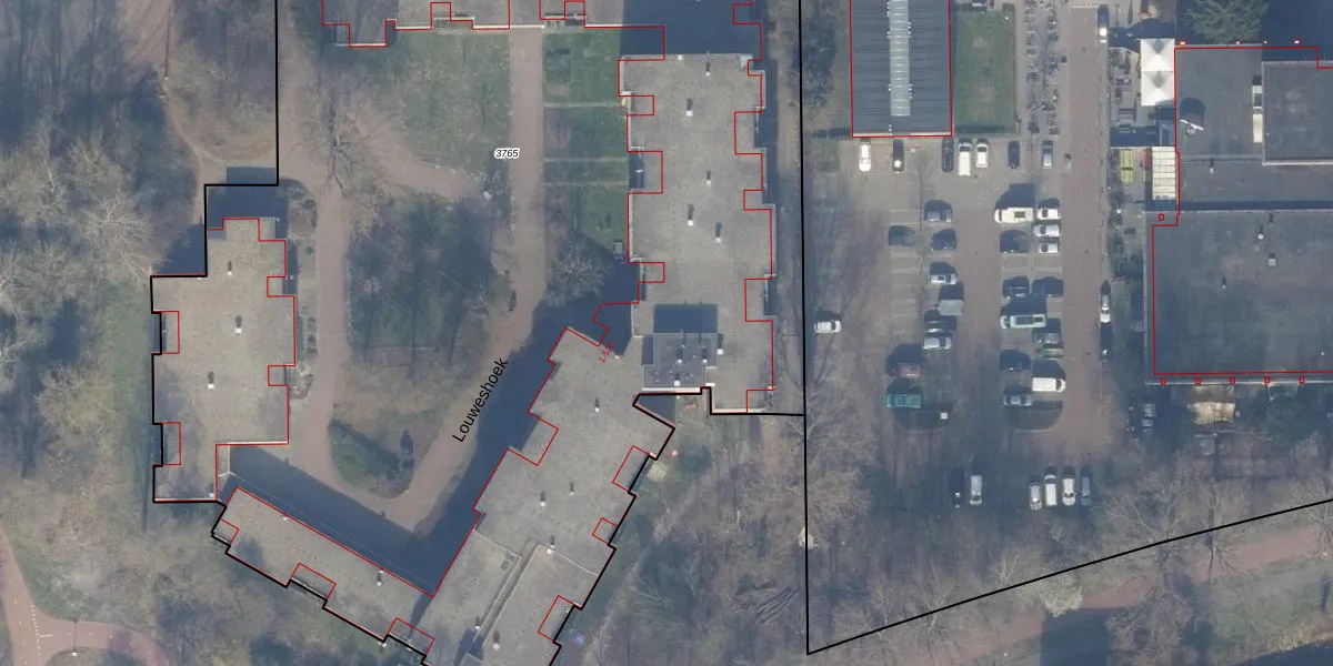 Het perceel waarop Louweshoek 4 staat heeft een oppervlakte van 1,1 ha. Dit is een zeer groot perceel. De perceeloppervlakte wordt geregistreerd door het Kadaster. Gedetailleerde informatie over de maten van dit perceel kunt u vinden in het rapport Kadastrale kaart met maatvoering van Louweshoek 4.
