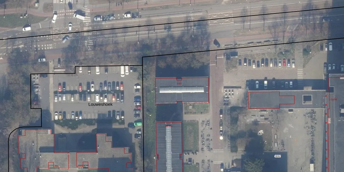 Het perceel waarop Louwesweg 45 staat heeft een oppervlakte van 2,4 ha. Dit is een zeer groot perceel. De perceeloppervlakte wordt geregistreerd door het Kadaster. Gedetailleerde informatie over de maten van dit perceel kunt u vinden in het rapport Kadastrale kaart met maatvoering van Louwesweg 45.