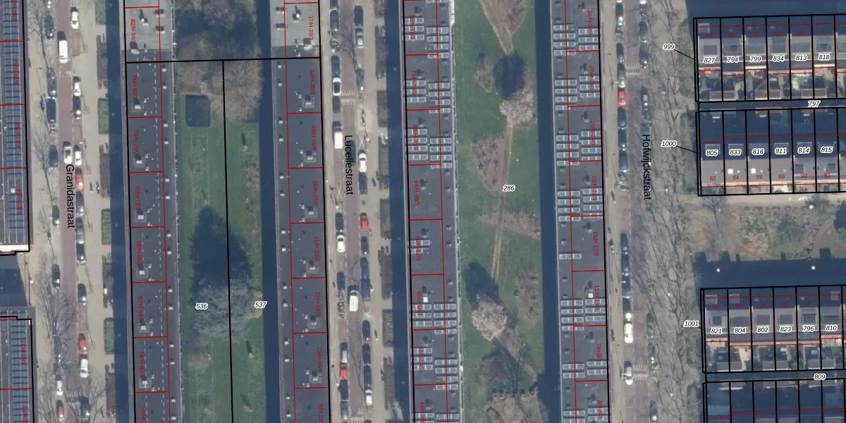 Het perceel waarop Lucellestraat 64-2 staat heeft een oppervlakte van 6516 m². Dit is een zeer groot perceel. De perceeloppervlakte wordt geregistreerd door het Kadaster. Gedetailleerde informatie over de maten van dit perceel kunt u vinden in het rapport Kadastrale kaart met maatvoering van Lucellestraat 64-2.