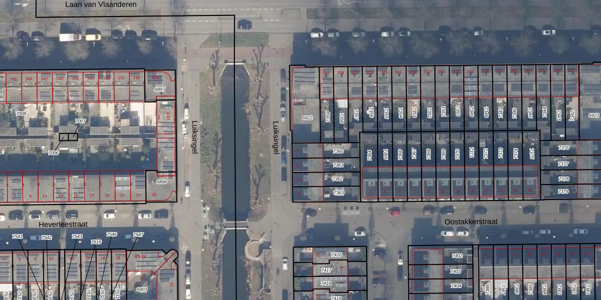 Gebruik de zoekbalk of klik op een perceel voor informatie over de adressen binnen dit perceel.