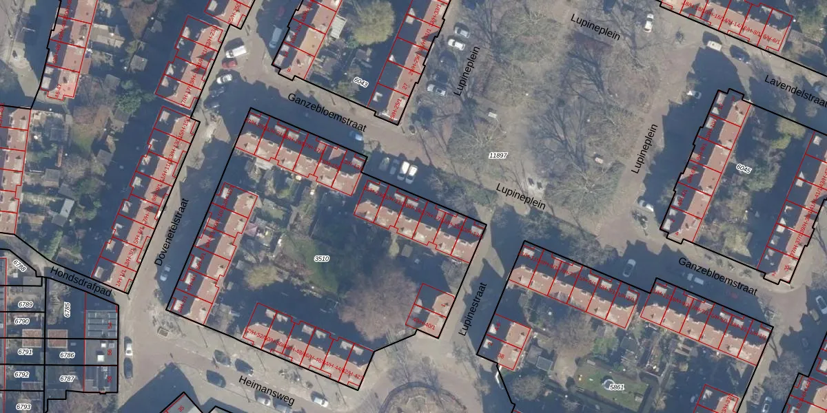 Het perceel waarop Lupineplein 19-H staat heeft een oppervlakte van 3025 m². Dit is een zeer groot perceel. De perceeloppervlakte wordt geregistreerd door het Kadaster. Gedetailleerde informatie over de maten van dit perceel kunt u vinden in het rapport Kadastrale kaart met maatvoering van Lupineplein 19-H.