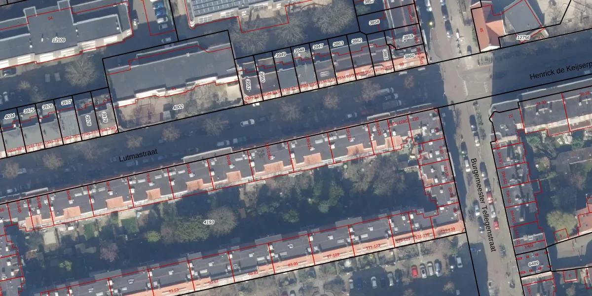 Het perceel waarop Lutmastraat 110 staat heeft een oppervlakte van 6860 m². Dit is een zeer groot perceel. De perceeloppervlakte wordt geregistreerd door het Kadaster. Gedetailleerde informatie over de maten van dit perceel kunt u vinden in het rapport Kadastrale kaart met maatvoering van Lutmastraat 110.