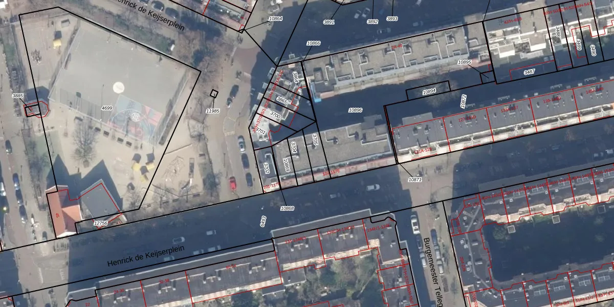Het adres is gelegen op perceel 3704 in de sectie V en de kadastrale gemeente Amsterdam. De kadastrale aanduiding is aldus ASD18-V-3704. Het perceel is kleiner dan gemiddeld in Amsterdam. Het perceel is 94 m² groot, terwijl het gemiddelde ligt op 558,8 m². Het grootste perceel in de kadastrale gemeente is 12,5 ha. Het kleinste perceel heeft een oppervlakte van 0 m². Er zijn 4 adressen aanwezig op het perceel. De laatste wijziging in het de Basisregistratie Kadaster (BRK) was op 09-08-2006.