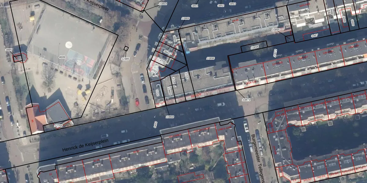 Het adres is gelegen op perceel 3704 in de sectie V en de kadastrale gemeente Amsterdam. De kadastrale aanduiding is aldus ASD18-V-3704. Het perceel is kleiner dan gemiddeld in Amsterdam. Het perceel is 94 m² groot, terwijl het gemiddelde ligt op 559,23 m². Het grootste perceel in de kadastrale gemeente is 12,5 ha. Het kleinste perceel heeft een oppervlakte van 0 m². Op het perceel zijn 4 adressen aanwezig. De laatste wijziging in het de Basisregistratie Kadaster (BRK) was op 09-08-2006.