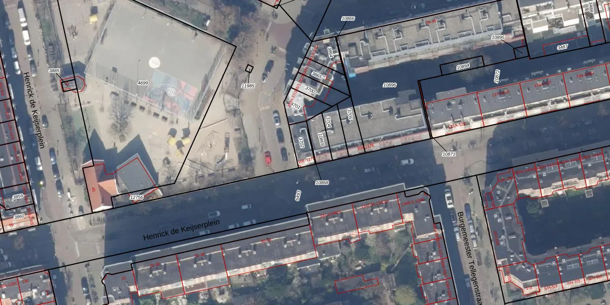 Het adres is gelegen op perceel 3702 in de sectie V en de kadastrale gemeente Amsterdam. De kadastrale aanduiding is aldus ASD18-V-3702. Het perceel is kleiner dan gemiddeld in Amsterdam. Het perceel is 83 m² groot, terwijl het gemiddelde ligt op 559,23 m². Het grootste perceel in de kadastrale gemeente is 12,5 ha. Het kleinste perceel heeft een oppervlakte van 0 m². Op het perceel zijn 5 adressen aanwezig. De huidige grenzen van het perceel zijn digitaal in de Basisregistratie Kadaster (BRK) geregistreerd op 17-12-2012.