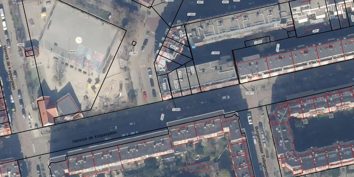 Het adres is gelegen op perceel 10869 in de sectie V en de kadastrale gemeente Amsterdam. De kadastrale aanduiding is aldus ASD18-V-10869. Het perceel is kleiner dan gemiddeld in Amsterdam. Het perceel is 81 m² groot, terwijl het gemiddelde ligt op 559,23 m². Het grootste perceel in de kadastrale gemeente is 12,5 ha. Het kleinste perceel heeft een oppervlakte van 0 m². Op het perceel zijn 5 adressen aanwezig. In de Basisregistratie Kadaster (BRK) werden de grenzen van het perceel geregistreerd op 09-08-2006.