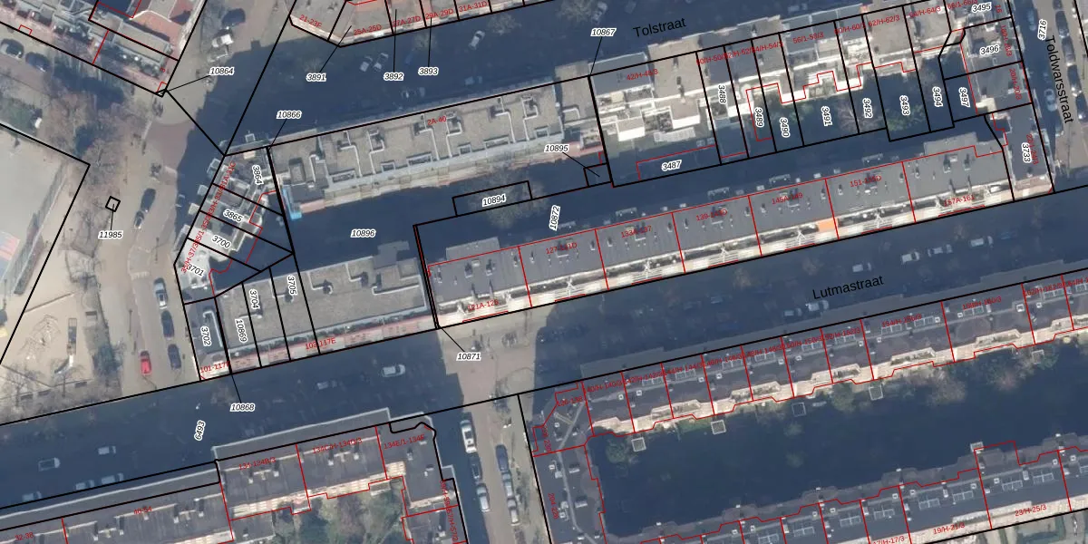 Het perceel waarop Lutmastraat 129-C staat heeft een oppervlakte van 2001 m². Dit is een zeer groot perceel. De perceeloppervlakte wordt geregistreerd door het Kadaster. Gedetailleerde informatie over de maten van dit perceel kunt u vinden in het rapport Kadastrale kaart met maatvoering van Lutmastraat 129-C.